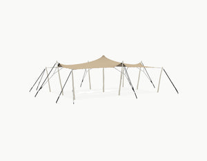 Manufactured from our professional-grade, 4-layer stretch fabric (800 g/m²), this stretchtent offers full protection against rain, wind, and UV exposure. The material ensures long-term reliability in all weather conditions.