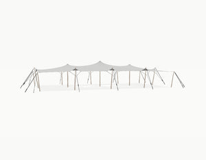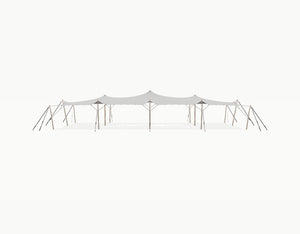 This stretchtent offers ca. 204.8 m2 of covered space, perfect for hosting 195 a 245 guests. Made from 800 gram stretch water- and windproof fabric, it provides reliable protection in any season. A complete, high quality and ready-to-install set.