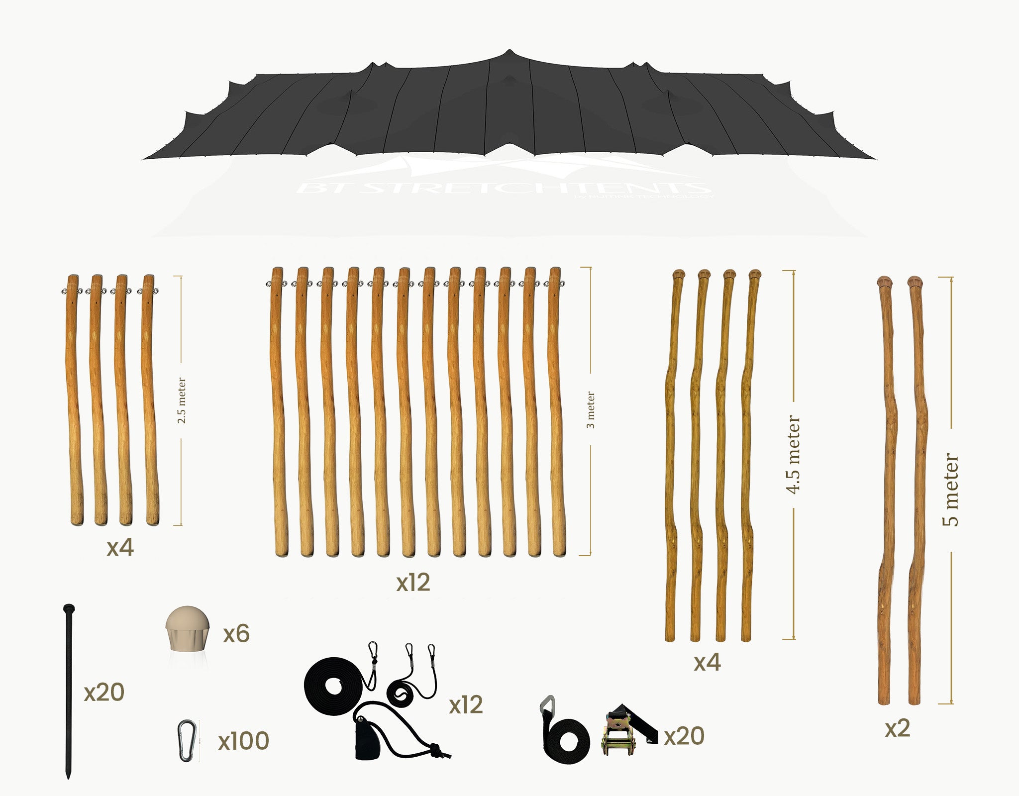 Stretchtent 21 × 15 meter "Robinia" Black – Complete Set
