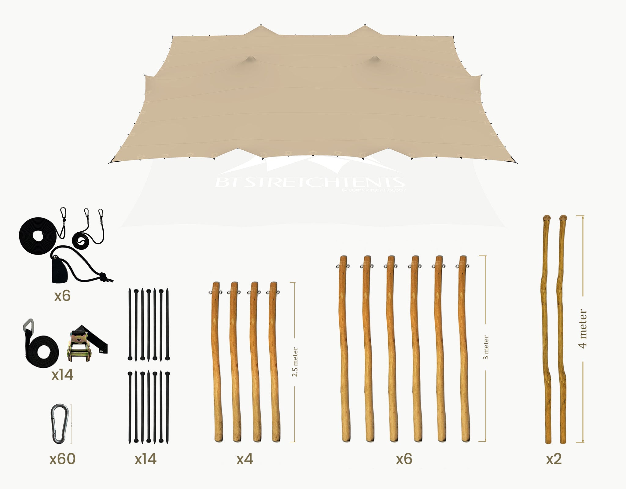 Stretchtent 12 × 10.5 meter "Robinia" Chino – Complete Set