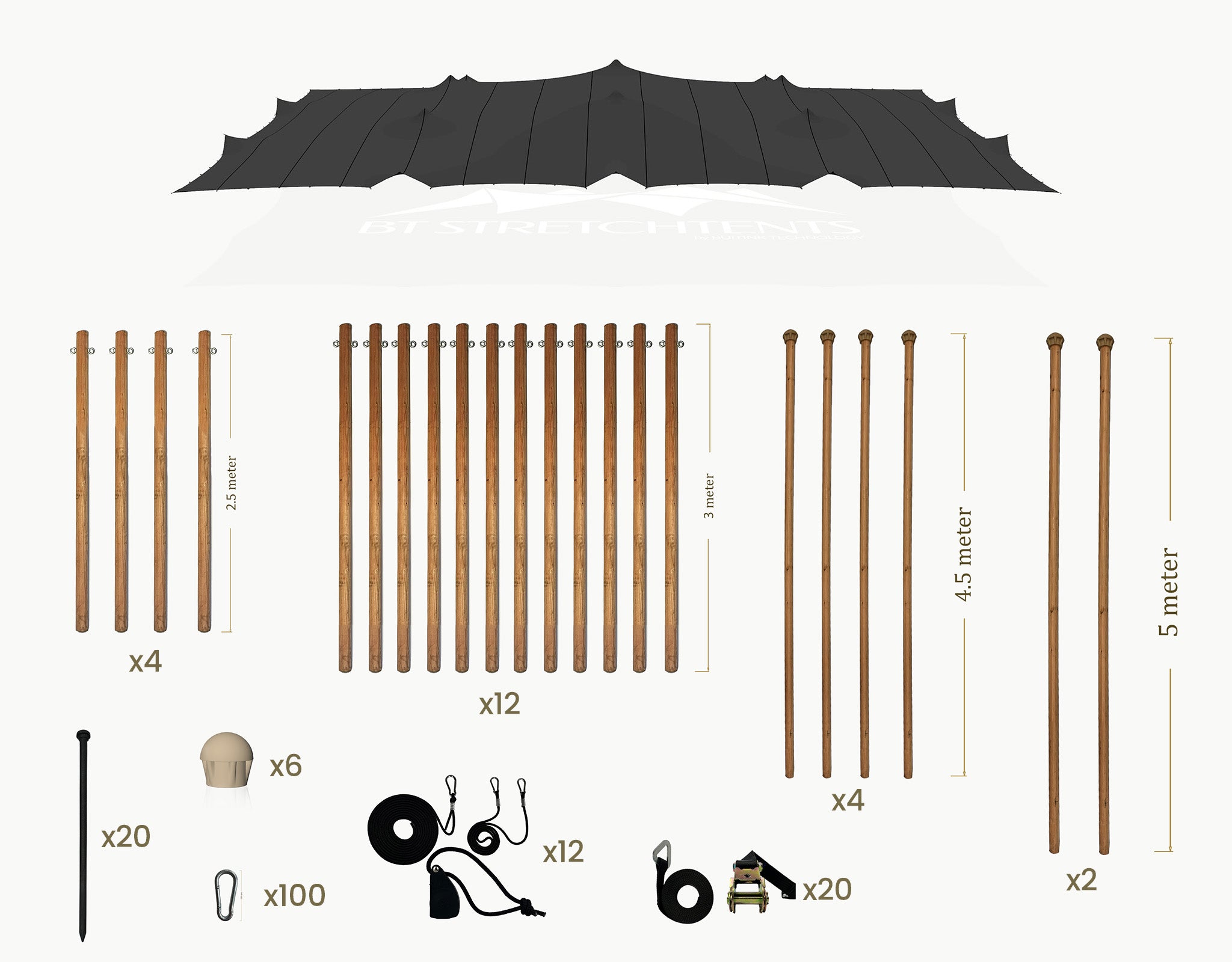 Stretchtent 21 × 15 meter "Douglas" Black – Complete Set