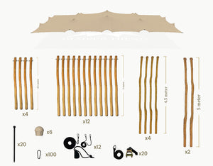 Stretchtent 21 × 15 meter "Robinia" Chino – Complete Set