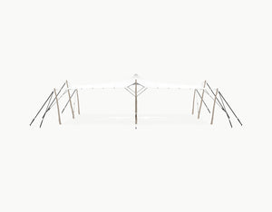 This stretchtent offers ca. 78.8 m² of covered space, perfect for hosting 60 a 90 guests. Made from 800 gram stretch water- and windproof fabric, it provides reliable protection in any season. A complete, high quality and ready-to-install set.