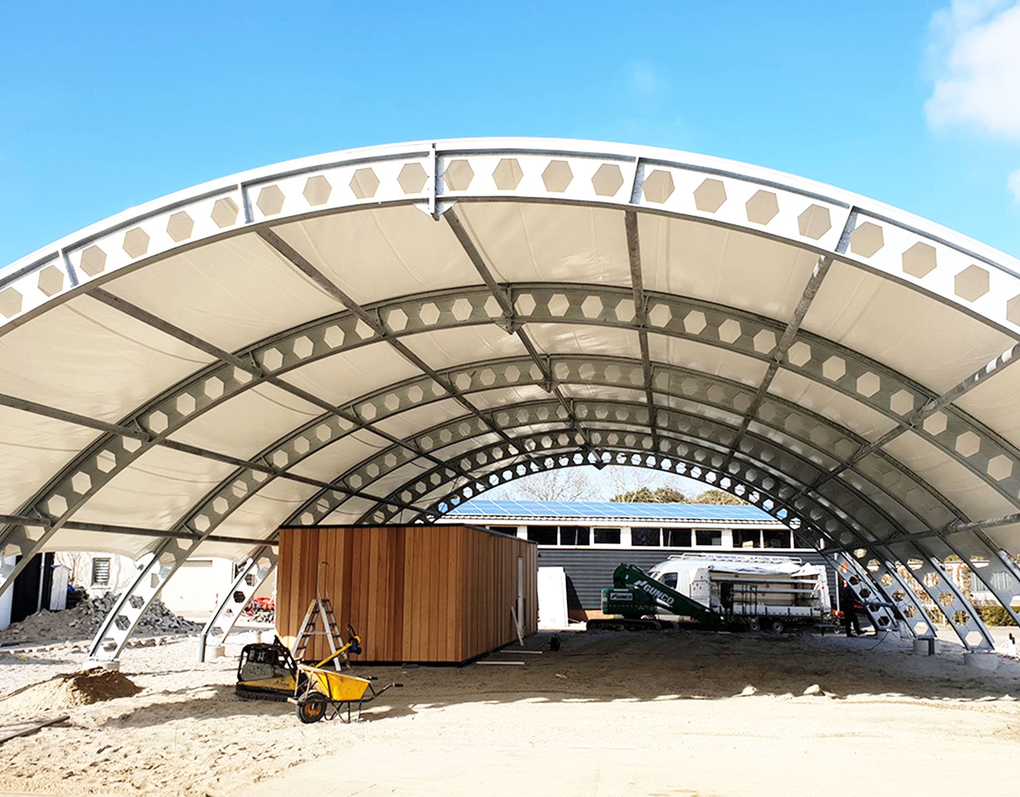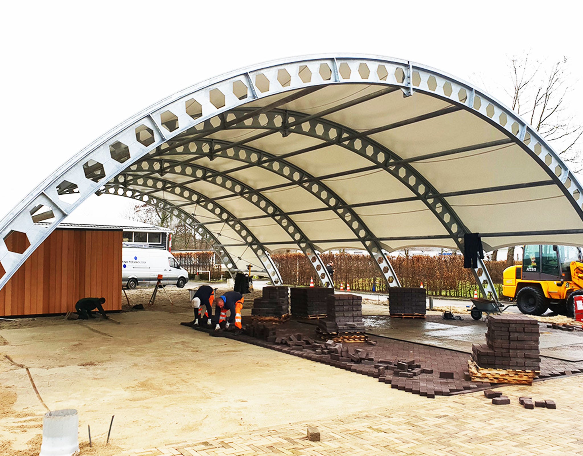 For more than 75 years, we have been designing and producing products made from Sailcloth, foil and technical textiles, from large permanent canopies for train stations to ETFE roofs for botanical gardens. In the past 15 years, we have also been developing and manufacturing stretchtents, successfully sold and rented under various brand names in Europe. Building on this experience and expertise, we have now launched our own brand: BT Stretchtents, with the goal of expanding into new markets.