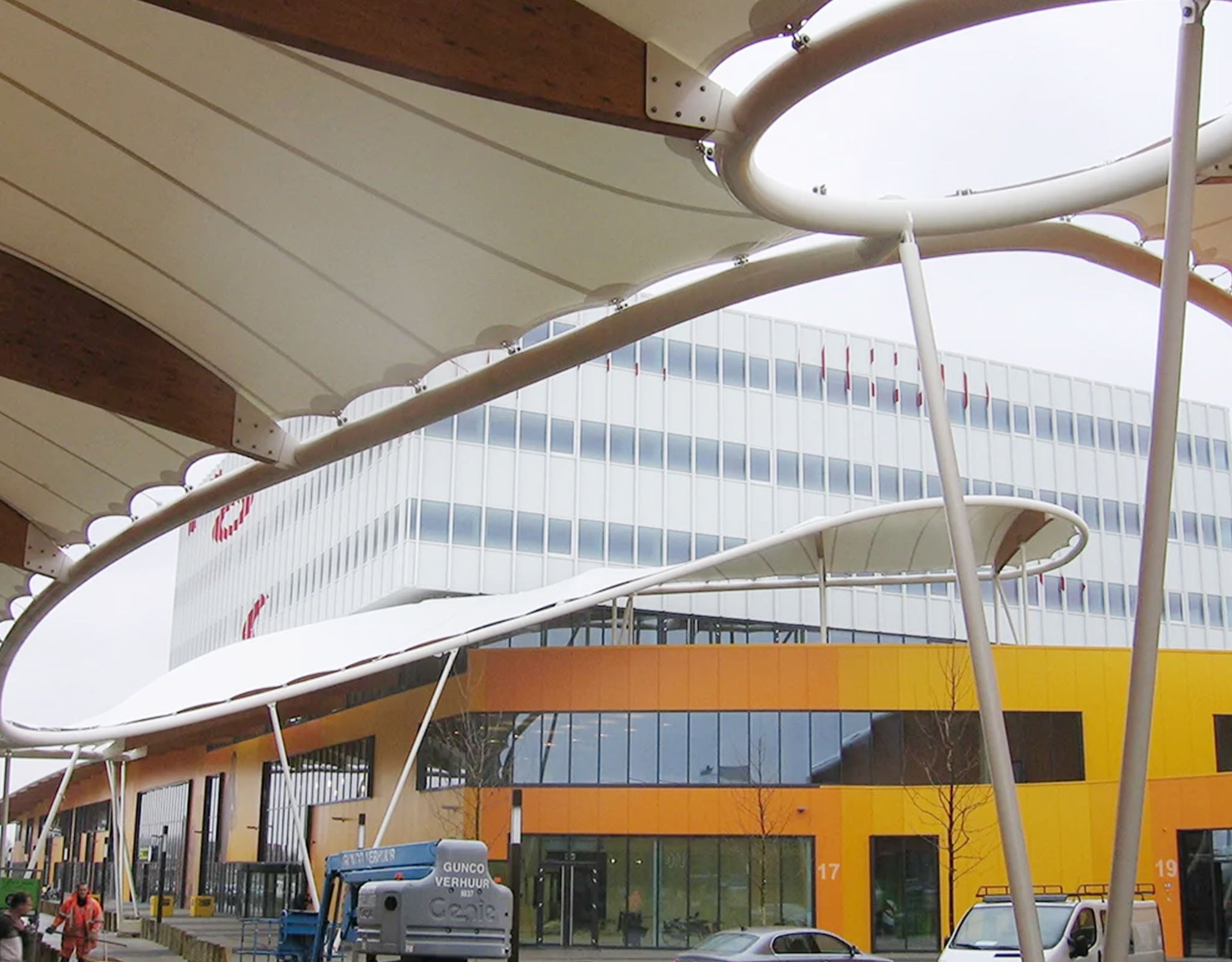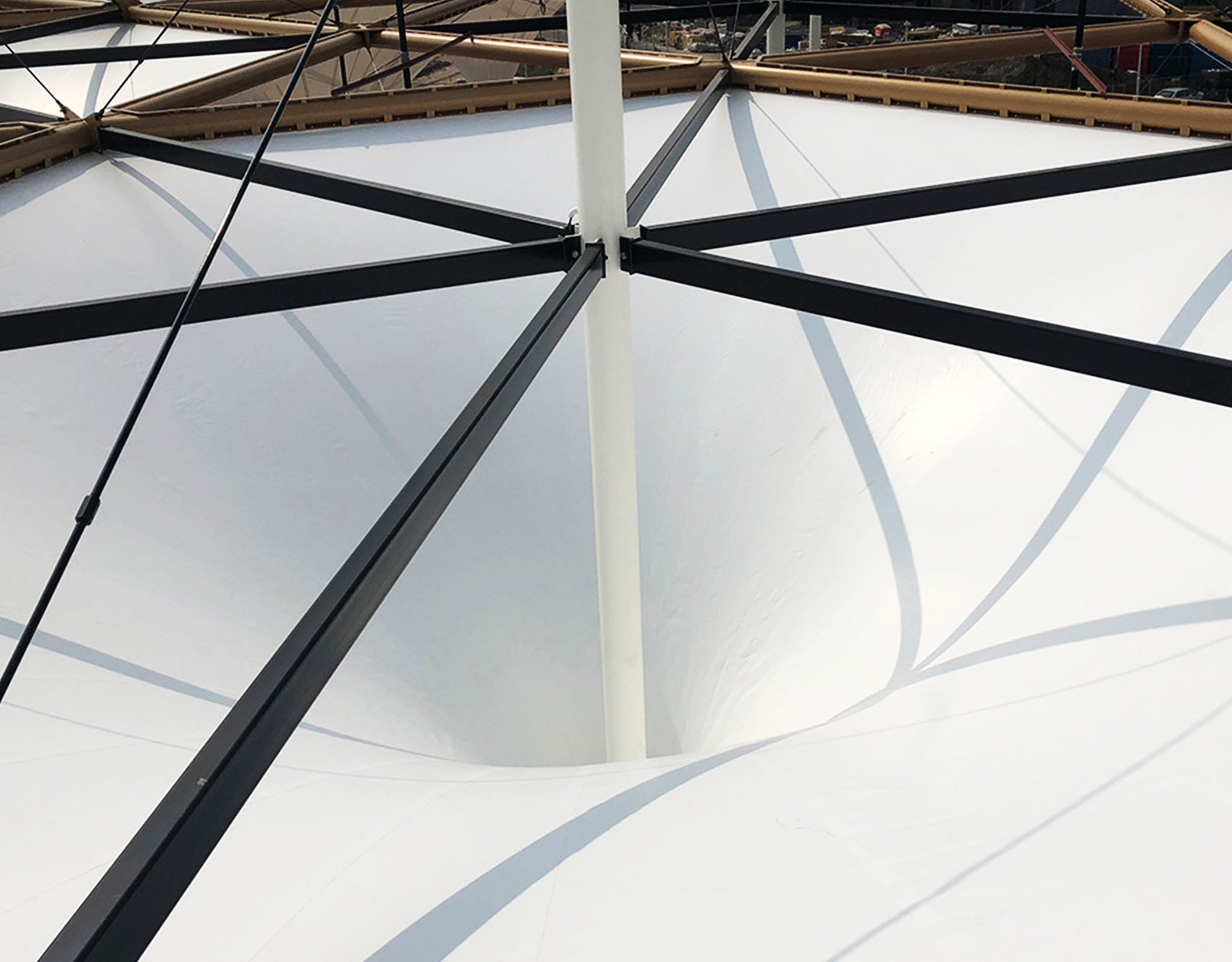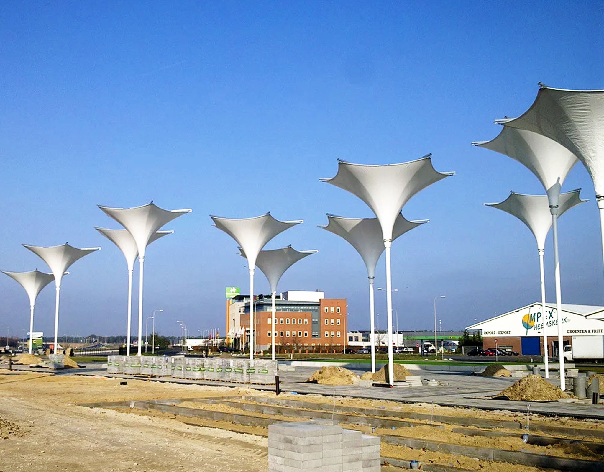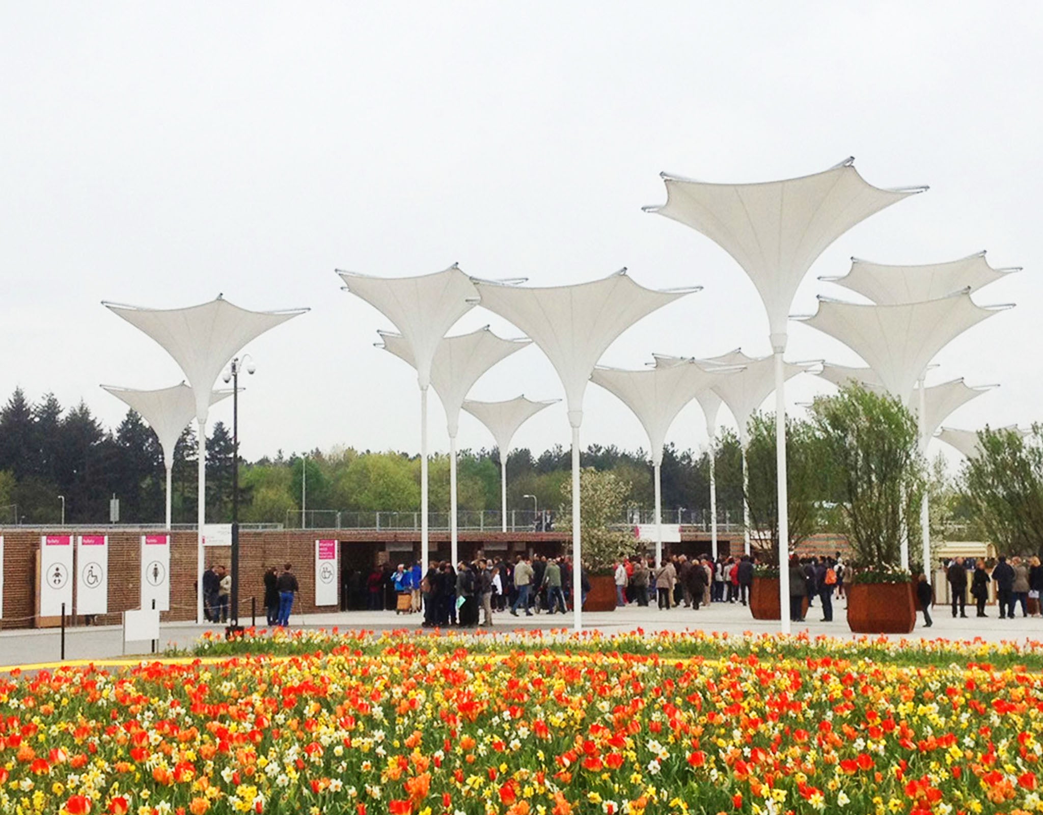 Our fabrics are certified flame-retardant according to European M2 and B1 standards and meet EN 13782 structural calculations for temporary outdoor structures.