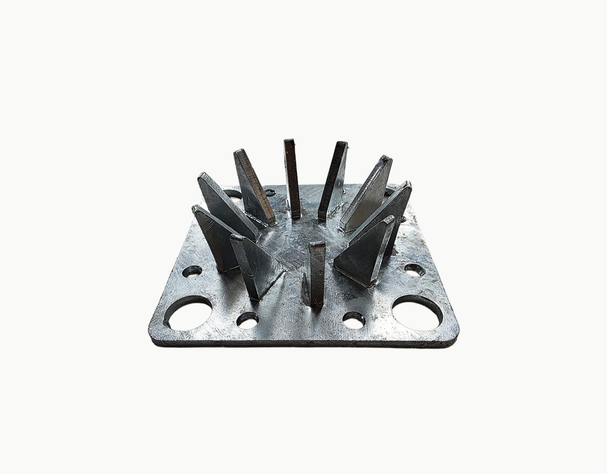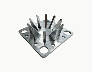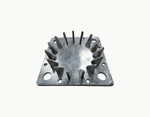 Manufactured from thick-gauge galvanized steel plate, this base plate holds side poles firmly in place, preventing movement during tensioning and exposure to wind loads