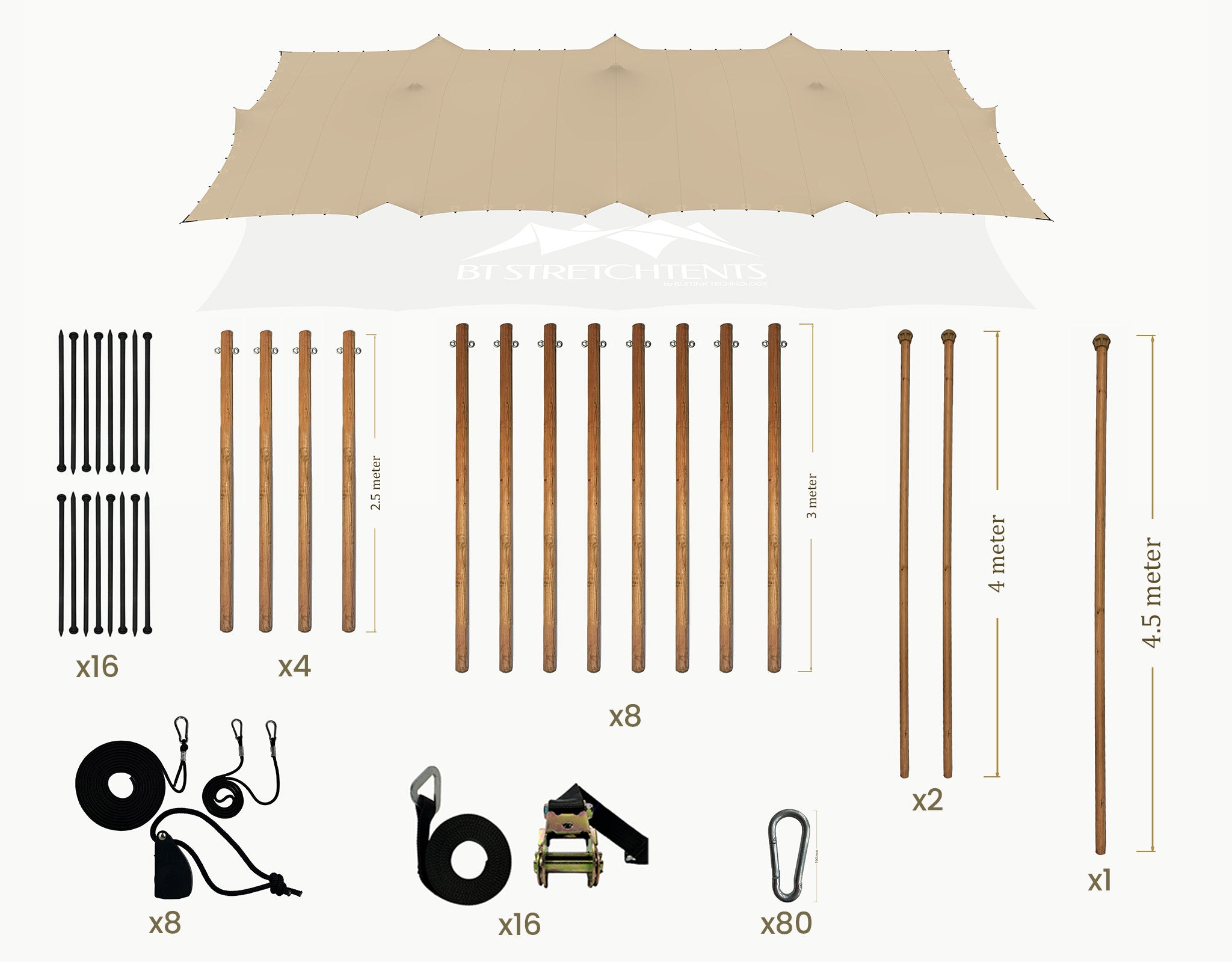 Stretchtent 19.5 × 10.5 meter "Douglas" Chino – Complete Set
