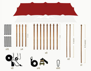 Stretchtent 19.5 × 10.5 meter "Douglas" Red – Complete Set